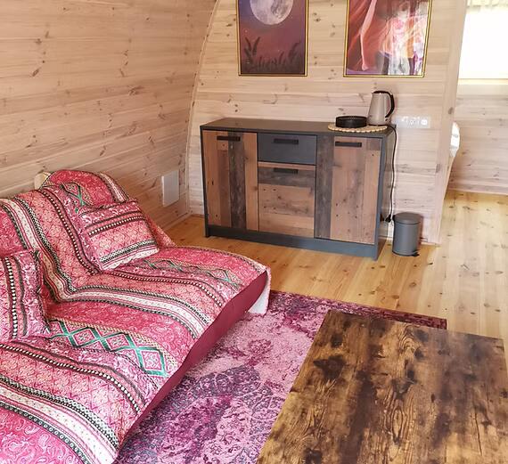 Ten izolowany i ogrzewany drewniany domek może być używany przez cały rok.